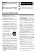 21. Replacement Parts – When replacement parts are required, be sure the service technician has used replacement parts specified by the manufacturer or have the same characteristics as the original part. Unauthorized substitutions may result in fire, electric shock, or other hazards. 22. Safety Check – Upon completion of any service or repairs to the appliance, ask the service technician to perform safety checks to determine that the appliance is in proper operation condition. 23.