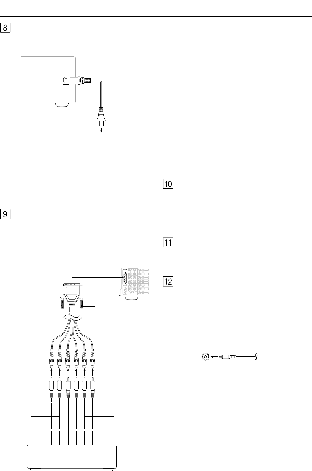 • When connecting a VCR or other video component, make sure