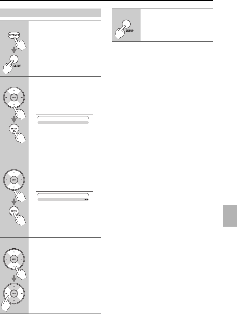 ricevitore AV utilizzando il tasto [SETUP], i tasti freccia
