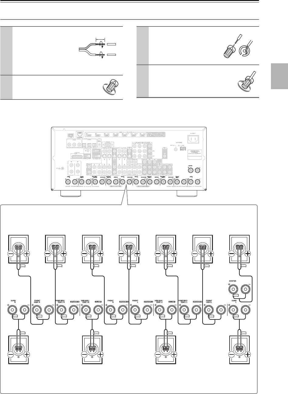 nur einen Surround-Rear-Lautsprecher verwenden, müssen Sie ihn mit den SURR BACK/ZONE 3 L-Klammer verbinden.