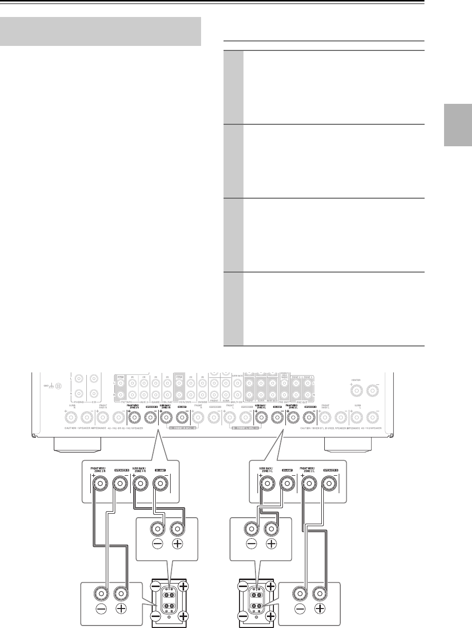 • Im „Bi-Amp“-Modus müssen die FRONT WIDE/ZONE 2