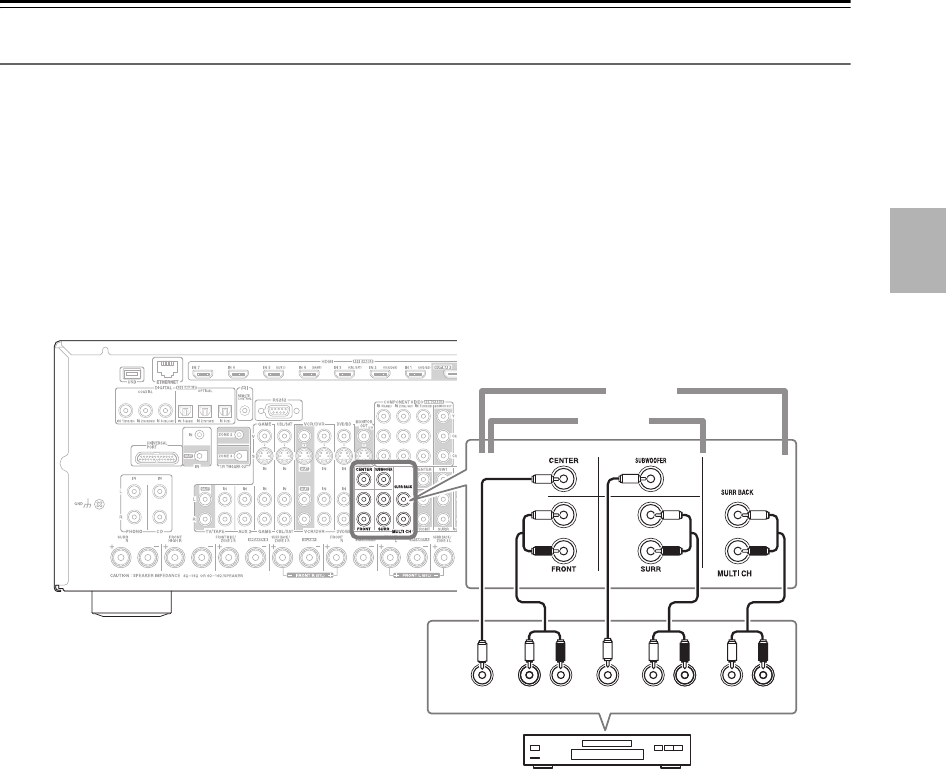 Verbinden Sie die Buchsen MULTI CH: FRONT L/R, CENTER, SURR L/R, SURR BACK L/R und SUBWOOFER