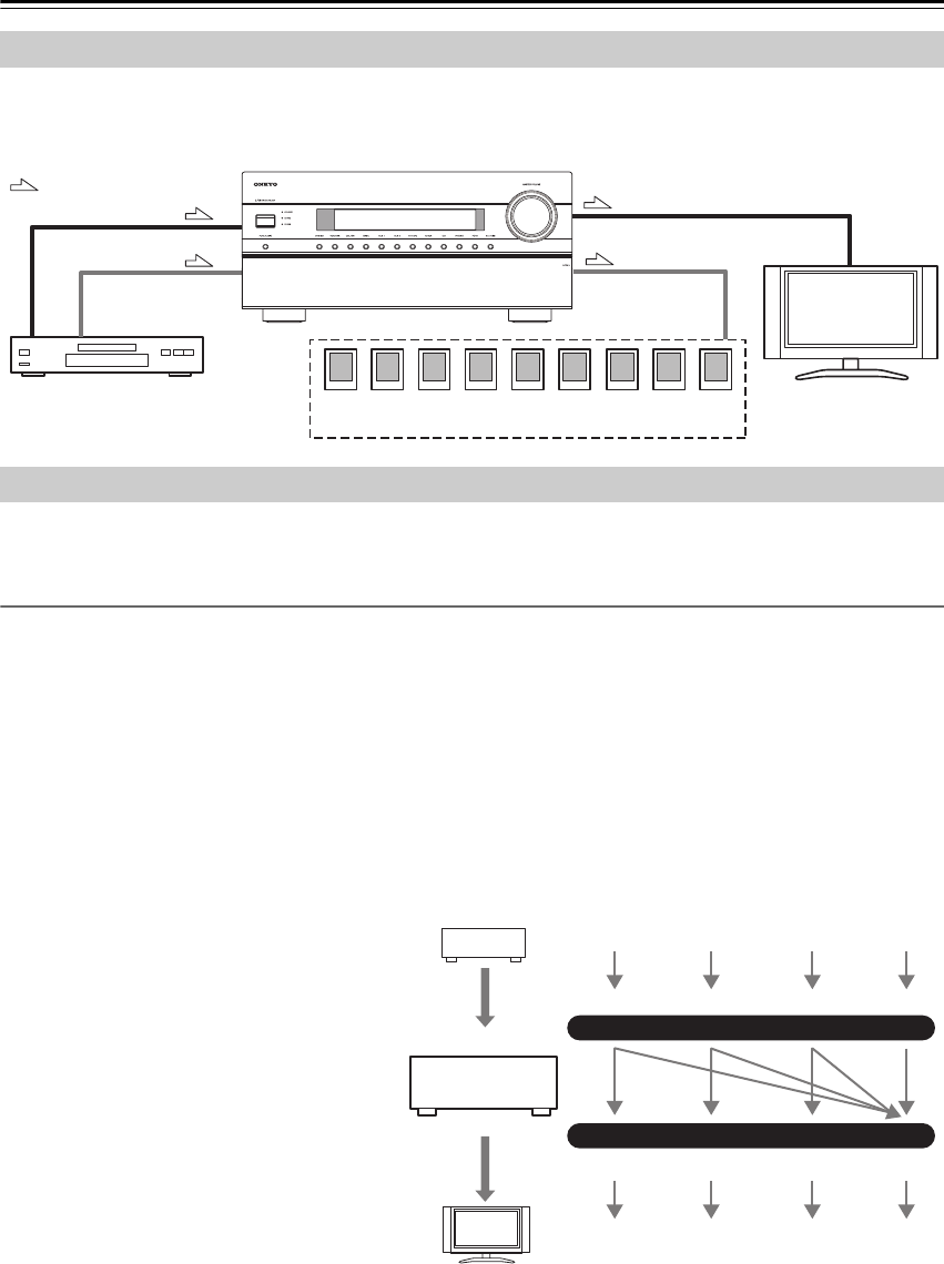 Il ricevitore AV può effettuare l’upconversion e la downconversion tra i formati video, in base all’impostazione “Uscita