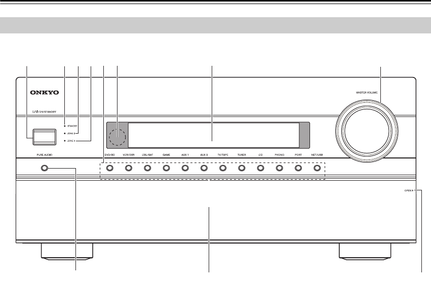 TUNER, CD, PHONO, PORT, NET/USB.
