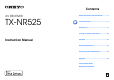 Contents AV RECEIVER TX-NR525 Safety Information and Introduction ............2 Table of Contents ...........................................5 Connections .................................................11 Turning On & Basic Operations..................20 Instruction Manual Playback........................................................24 Advanced Operations ..................................41 Controlling Other Components...................57 Appendix ...........................................