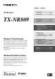 Français AV Receiver Español Introduction ..............................Fr-2 Introducción............................. Es-2 TX-NR809 Branchements ........................Fr-12 Conexiones ............................ Es-12 Mise sous tension et opérations de base ............Fr-22 Encendido y operaciones básicas............................... Es-22 Opérations plus sophistiquées.....................Fr-44 Operaciones avanzadas .......