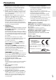 Précautions 1. Enregistrement et droits d’auteur—Outre pour l’utilisation privée, tout enregistrement d’œuvres protégées par des droits d’auteur est interdit sans l’accord préalable du détenteur de ces droits. 2. Fusible—Le fusible à l’intérieur du appareil ne peut pas être remplacé par l’utilisateur. Si vous n’arrivez pas à mettre l’appareil sous tension, adressez-vous à votre revendeur Onkyo. 3. Entretien—Essuyez régulièrement le boîtier de l’appareil avec un chiffon doux et sec.