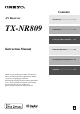 Contents AV Receiver TX-NR809 Introduction ...................................2 Connections.................................12 Turning On & Basic Operations ......22 Instruction Manual Advanced Operations .................44 Controlling Other Components...70 Appendix ......................................79 Thank you for purchasing an Onkyo AV Receiver. Please read this manual thoroughly before making connections and plugging in the unit.