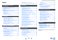 Appendice ■ Uscite audio Analogico ZONE2 LINE OUT, ZONE3 LINE OUT Uscite preamplificatore multicanale analogiche 7 Uscite del preamplificatore per il subwoofer 2 Uscite dei diffusori Principale (L, R, C, SL, SR, SBL, SBR) + Anteriore orizzontale/ZONA2 (L, R) + Anteriore alto (L, R) Cuffie 1 (ø 6,3) ■ Varie Configurazione Mic RS232 RI USB Ethernet Ingresso IR 12 V Trigger Out 1 1 1 1 (anteriore) 1 1 1 Le caratteristiche tecniche e le funzioni sono soggette a variazioni senza preavviso.