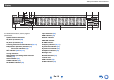 Safety Information and Introduction Display s For detailed information, see the pages in parentheses. Z2 (Zone 2) indicator (84) Input indicators (22) HDMI indicator (78) DIGITAL indicator ANALOG indicator Z3 (Zone 3) indicator (84) Bi AMP indicator Listening mode and format indicators (45, 76) Audyssey indicator (28, 71) Dynamic EQ indicator (72) Dynamic Vol indicator (72) Speaker/channel indicators M.