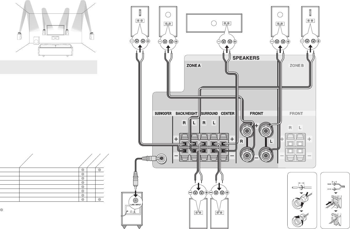 ou vos enceintes en hauteur. Ce qui suit montre les diverses