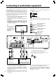 Connecting antennas Connecting the supplied FM and AM indoor antennas (aerials) ANTENNA ANTENNA FM 75 AM L L DIGITAL INPUT COAXIAL OPTICAL 2 1 VIDEO 2 IN REMOTE CONTROL VIDEO 1 OUT IN DVD IN MONITOR OUT SURROUND SPEAKERS FRONT SPEAKERS B FRONT SPEAKERS A AC OUTLET CENTER SPEAKER L VIDEO R R R VOLTAGE SELECTOR S VIDEO 120 V IN OUT IN IN OUT IN SURR FRONT CENTER L L SUBWOOFER PRE OUT 220-230 V R R CD TAPE VIDEO 2 VIDEO 1 DVD SUB WOOFER North American models 1 Strip a