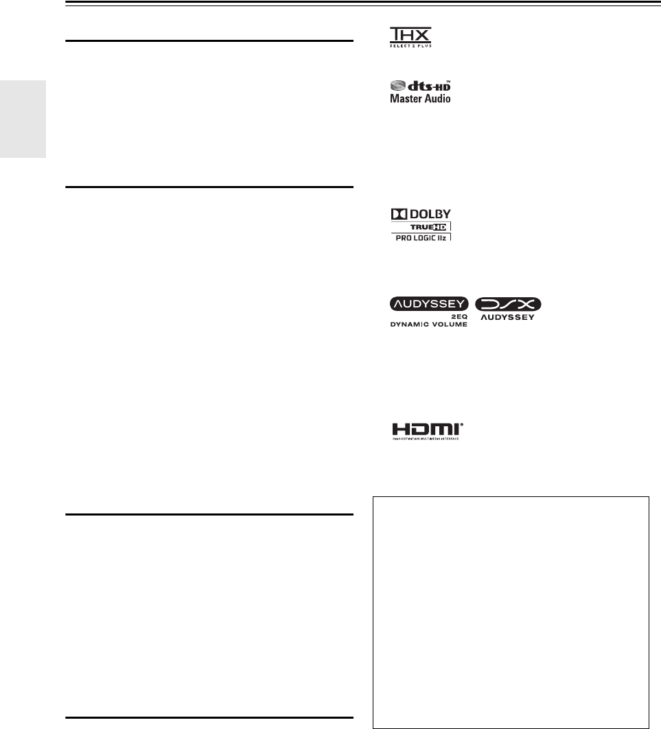 Audyssey Dynamic EQ™ sono marchi della
