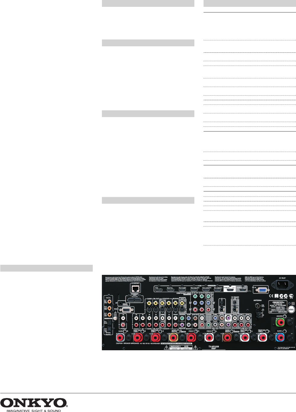 Due to a policy of continuous product improvement, Onkyo reserves the right to change specifications and appearance without notice. THX Select2 Plus is a trademark of THX Ltd. THX may be registered in some jurisdictions. All rights reserved. Manufactured under license from