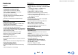 Safety Information and Introduction Features Connections Amplifier • 8 HDMI Inputs (1 on front panel) and 2 Outputs • 4K (up-scaling and Passthrough*)-compatible HDMI Inputs • 110 Watts/Channel @ 8 ohms (FTC) • 170 Watts/Channel @ 6 ohms (IEC) • 185 Watts/Channel @ 6 ohms (JEITA) • WRAT–Wide Range Amplifier Technology (5 Hz to 100 kHz bandwidth) • Optimum Gain Volume Circuitry • H.C.P.S.