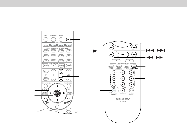 (L’illustration montre la télécommande d’un ampli-tuner AV Onkyo.)
