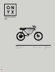 SERVICE MANUAL BASIC CARE Bare Bones Guide 1. Regularly clean and lubricate all moving parts, tighten nuts/bolts, and adjust as required. This in- cludes all steering, bicycle pedals, suspension, and wheel parts. See the Detailed Hardware tables for hardware and torque specifications for your ONYX Motorbike. 2. Keep your bike clean by wiping the frame with a damp cloth. If needed, apply a mild cleaner or soap mixture to the cloth and wipe the frame. Dry your bike by wiping with a clean, dry cloth.
