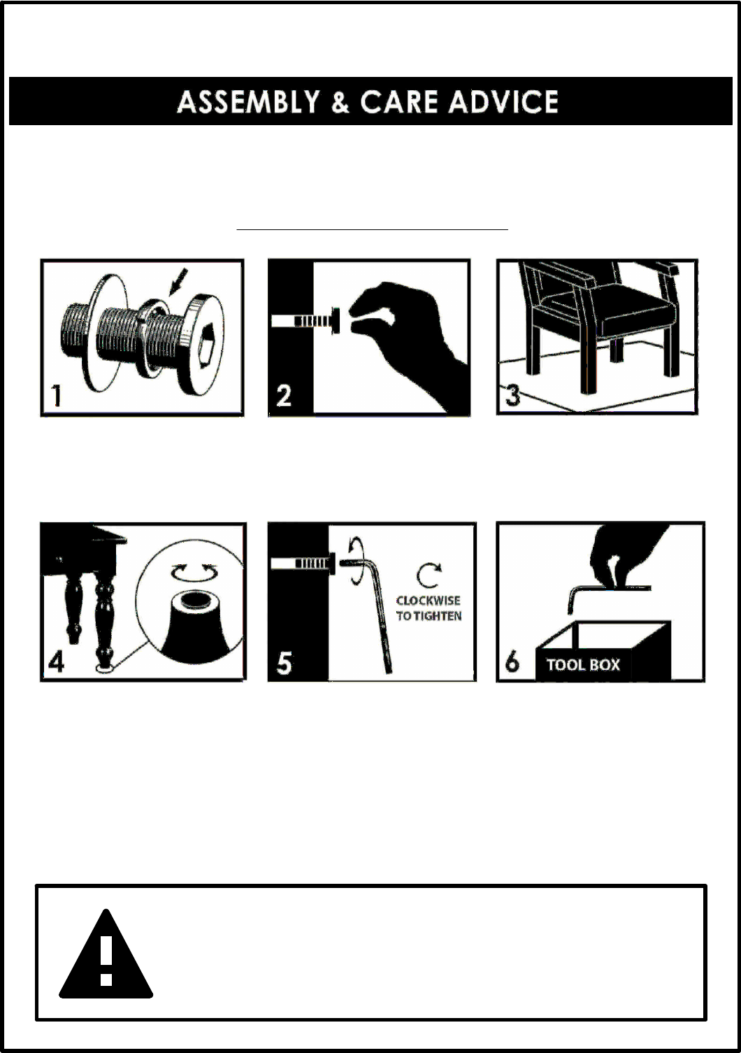 FOR YOUR FURNITURE TO LAST,CORRECT ASSEMBLY AND PROPER MAINTENANCE ARE NECESSARY.