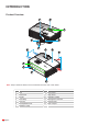 INTRODUCTION Keypad 1 2 3 9 12 4 11 5 6 10 No 12 English Item 9 8 7 No Item 1. On/Standby LED 7. IR Receiver 2. Lamp LED 8. Enter 3. Temp LED 9. Keystone Correction 4. Information 10. Menu 5. Re-Sync 11. Source 6.