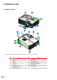 INTRODUCTION Connections 1 2 3 HDMI AUDIO OUT USB POWER OUT 5 No 4 Item No Item 1. HDMI Connector 4. Kensington 2. USB POWER OUT (5V 1.5A) / Service / Mouse Connector 5. Power Socket 3. AUDIO OUT Connector TM Lock Port Notee: Remote mouse requires special remote control. To ensure the best image quality and avoid connection errors, we recommend the use of High Speed or Premium Certified HDMI cables up to 5 meters.