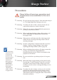 Appendices Image is out of focus Make sure the lens cap is removed. Adjusts the Focus Ring on the projector lens. Make sure the projection screen is between the required distance 3.9 to 39.4 feet (1.2 to 12.0 meters) from the projector. See page 17. The image is stretched when displaying 16:9 DVD title When you play anamorphic DVD or 16:9 DVD, the projector will show the best image in 16:9 format on projector side. If you play 4:3 format DVD title, please change the format as 4:3 in projector OSD.