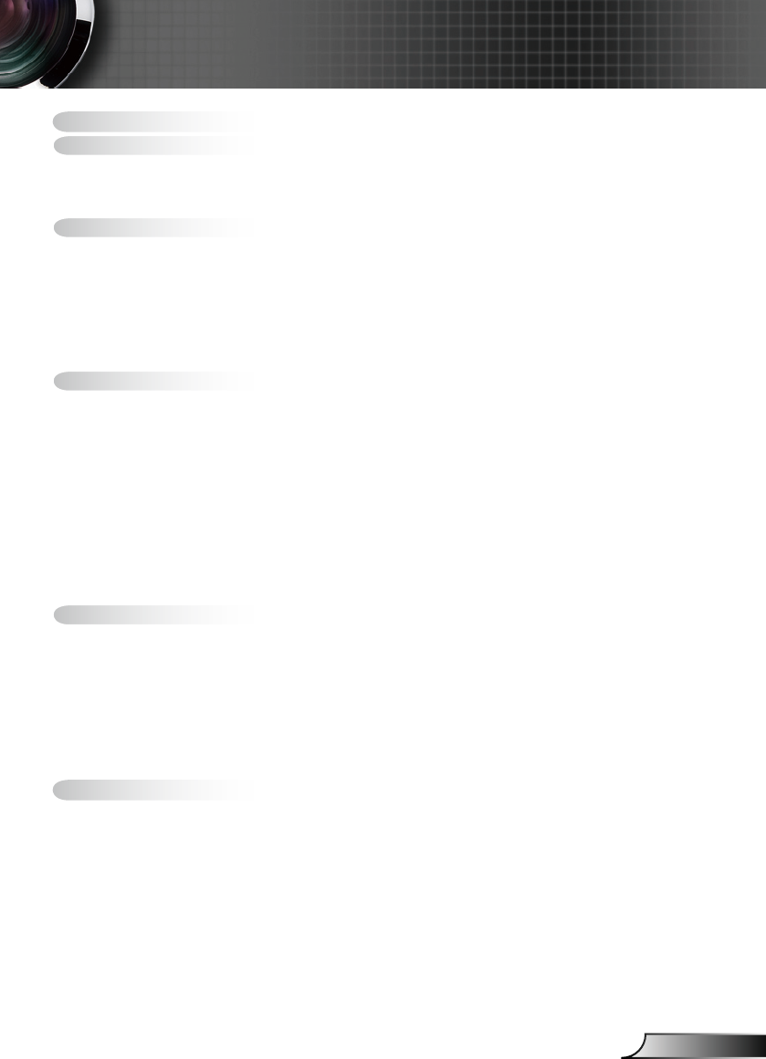 Appendices Image is out of focus Make sure the lens cap is removed. Adjusts the Focus Ring on the projector lens. Make sure the projection screen is between the required distance 3.9 to 32.8 feet (1.2 to 10.0 meters) from the projector. See page 18. The image is stretched when displaying 16:9 DVD title When you play anamorphic DVD or 16:9 DVD, the projector will show the best image in 16:9 format on projector side. If you play 4:3 format DVD title, please change the format as 4:3 in projector OSD.