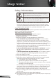 Usage Notice Eye Safety Warnings ▀■ Avoid staring directly into the projector’s beam of light at all times. ▀■ Minimize standing facing into the beam. Keep your back to the beam as much as possible. ▀■ Using a stick or laser pointer is recommended to avoid the need for the presenter to enter the beam.