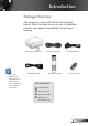 Introduction Package Overview This projector comes with all the items shown below. Check to make sure your unit is complete. Contact your dealer immediately if anything is missing. Projector with lens cap Due to the difference in applications for each country, some regions may have different accessories. USB Cable 1.8m Power Cord 3.0m IR Remote Control VGA Cable 1.