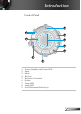 Introduction Product Overview Main Unit 2 9 3 1 5 8 4 8 1. 2. 3. 4. 5. English Control Panel Zoom Focus Zoom Lens IR Receivers 6 6. 7. 8. 9.