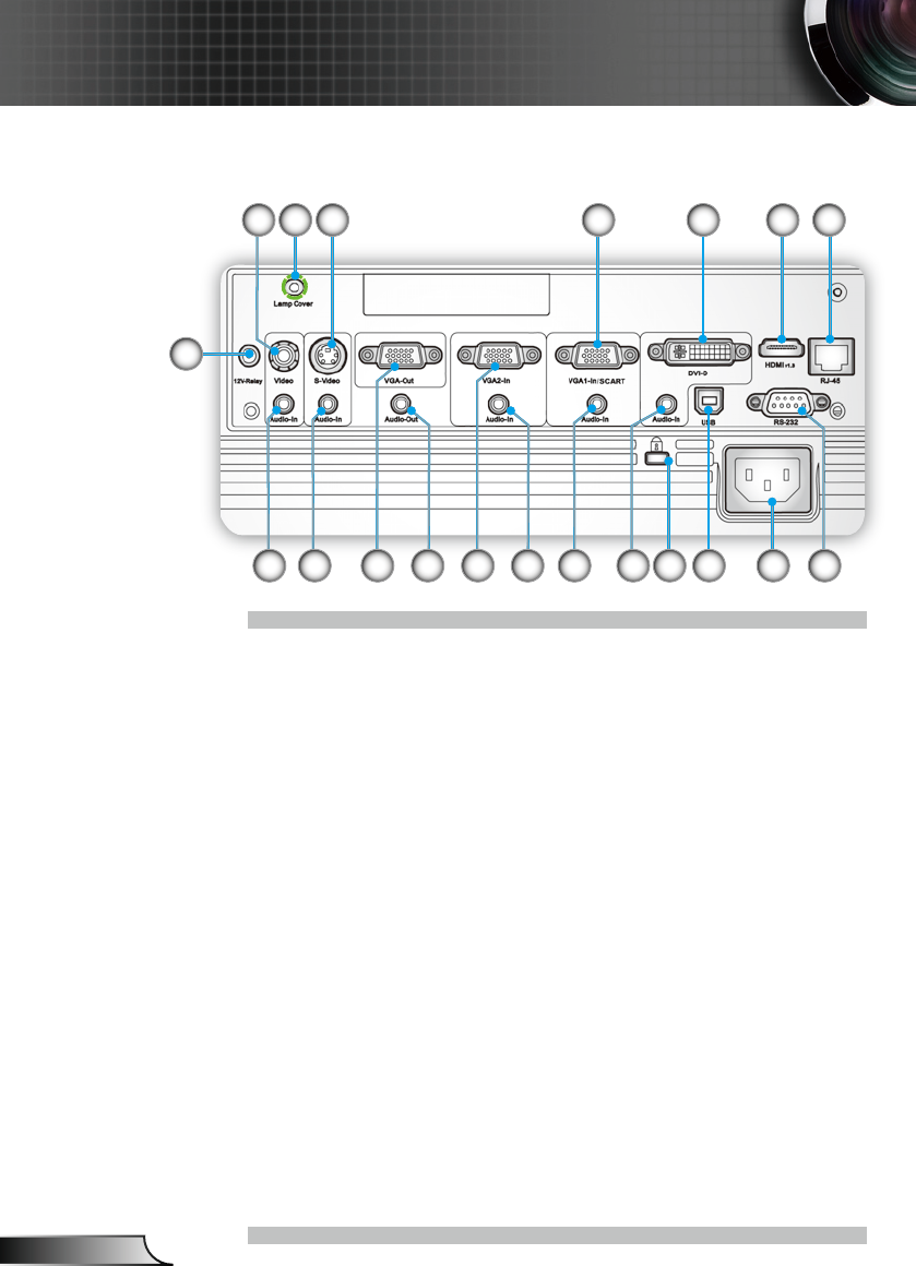 4. Lamp Cover screw (for open the top cover)