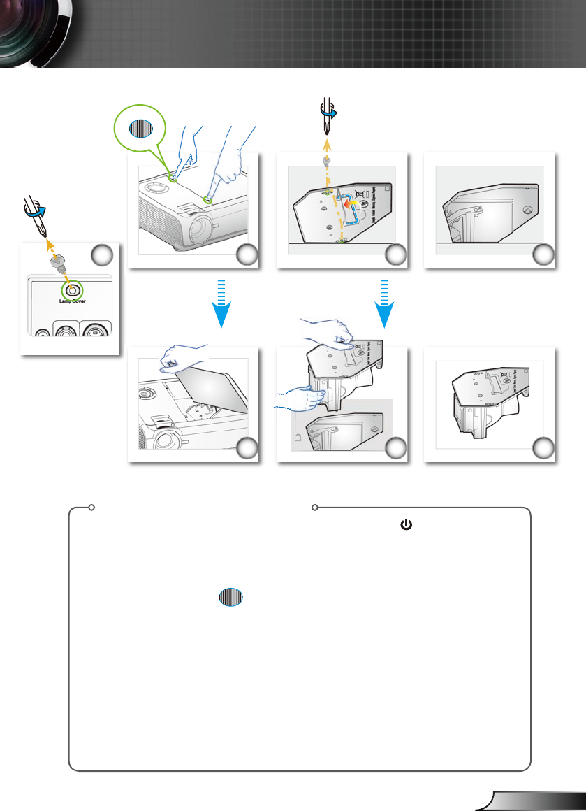 10. Turn on the projector and use “Lamp Reset” after the lamp module is