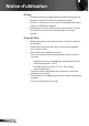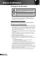 Notice d’utilisation Mises en Garde Veuillez suivre tous les avertissements, les mises en garde et les consignes recommandés dans ce guide d’utilisation. ▀■ Avertissement- Ne pas regarder dans l’objectif du projecteur lorsque la lampe est allumée. La forte lumière peut vous faire mal aux yeux. ▀■ Avertissement- Pour réduire le risque d’incendie ou d’électrocution, ne pas exposer le projecteur à la pluie ou à l’humidité.