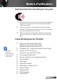 Annexes Avis concernant les Réglementations & la Sécurité Cet appendice liste les instructions générales concernant votre projecteur. Avis FCC Cet appareil a été testé et reconnu conforme aux limites pour les appareils numériques de Classe B, conformément à l’Article 15 des Règlements FCC. Ces limites garantissent une protection suffisante contre les interférences dangereuses liées à l’utilisation de l’équipement dans un environnement résidentiel.