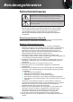 Benutzungshinweise Vorsichtsmaßnahmen Befolgen Sie alle Warnhinweise, Vorsichtsmaßnahmen und Wartungshinweise in diesem Handbuch. ▀■ Warnung - Blicken Sie niemals direkt in das Objektiv des Projektors, wenn die Lampe eingeschaltet ist. Das helle Licht kann Ihren Augen schaden. ▀■ Warnung - Der Projektor darf weder Regen noch Feuchtigkeit ausgesetzt werden, andernfalls bestehen Brand- und Stromschlaggefahr. ▀■ Warnung - Versuchen Sie nicht, den Projektor zu öffnen oder zu demontieren.