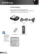 Anhänge Das Bild ist nicht fokussiert Stellen Sie sicher, dass die Objektivabdeckung entfernt ist. Stellen Sie die Bildschärfe über den Fokusring des Projektors ein. Achten Sie darauf, dass sich die Leinwand in der richtigen Entfernung zum Projektor befindet. Siehe Seite 17. Das Bild ist bei einer 16:9 DVD-Wiedergabe zu langgestreckt Wenn Sie eine anamorphe DVD oder 16:9-DVD wiedergeben, erreichen Sie durch Einstellen auf 16:9 über das OSD die bestmögliche Bildqualität.
