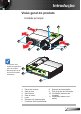 Introdução Visão geral da embalagem Desembale e inspecione o conteúdo da caixa para assegurar que todas as peças listadas a baixo estão na caixa. Caso algo esteja faltando, favor entrar em contato com seu centro de serviço ao cliente mais próximo. Projector Devido a diferentes aplicações em cada país, algumas regiões podem ter diferentes acessóios.