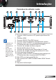 Introdução Visão geral do produto Unidade principal 4 10 1 11 10 3 6 2 5 A interface está sujeita às especificações do modelo. 7 Não bloqueie as aberturas de entrada/ saída de ar. 8 9 1. 2. 3. 4. 5. 6. 7. Painel de controle Anel de foco Alto Falante Anel de zoom Lente Receptor de infravermelho Conexões de Entrada/Saída 8. Soquete de alimentação 9. Pés de ajuste de inclinação 10. V entilação (abertura de entrada) 11.