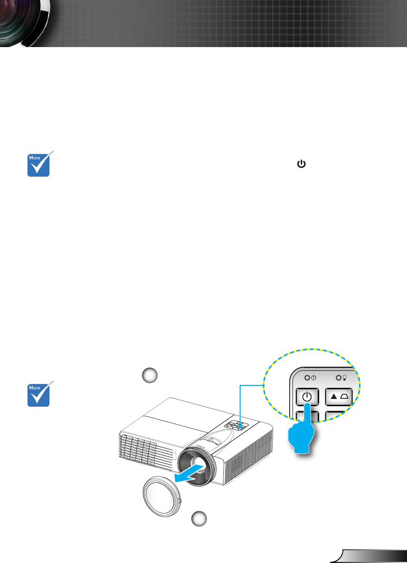 3. Acenda a lâmpada pressionando o botão “ ” na parte superior