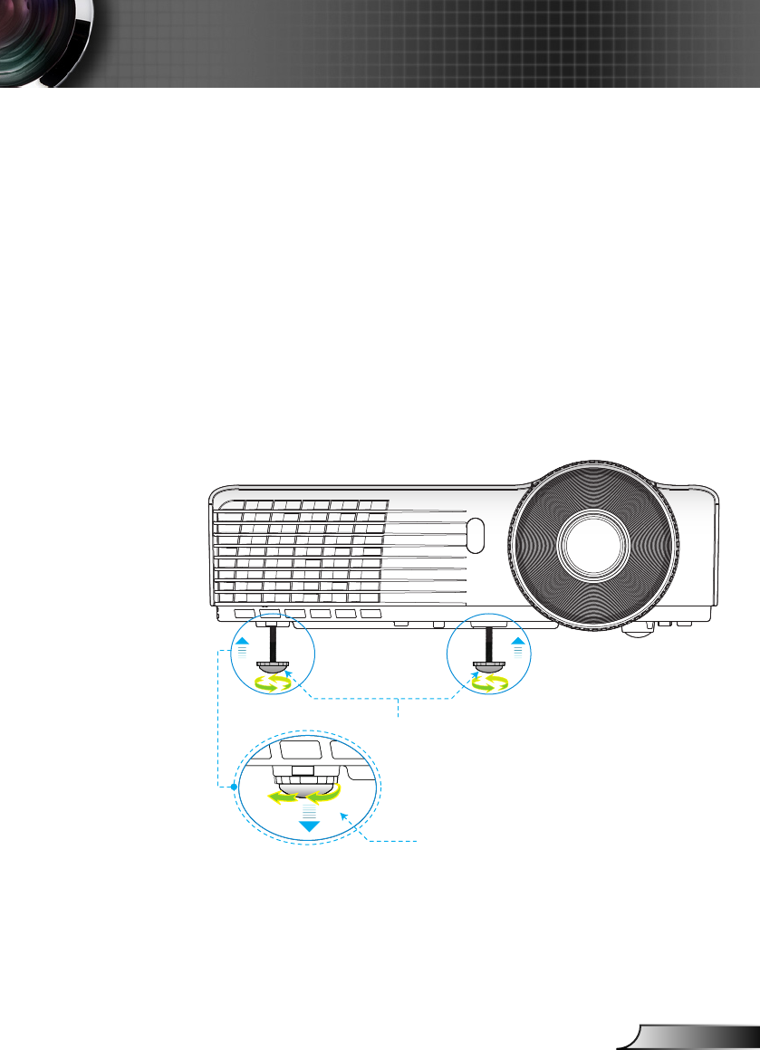 O projetor está equipado com pés de elevação para ajus-