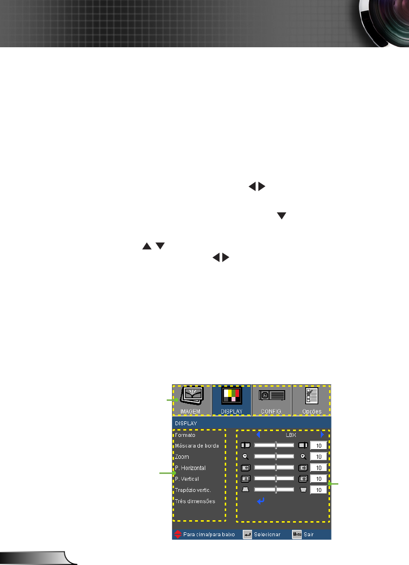 Menus de exibição em tela