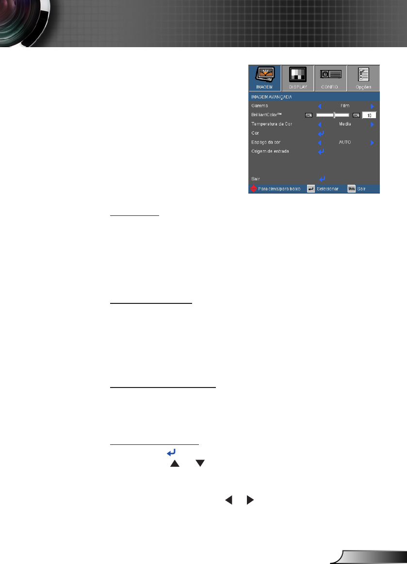 Magenta/Amarelo: Use ou para selecionar as Cores