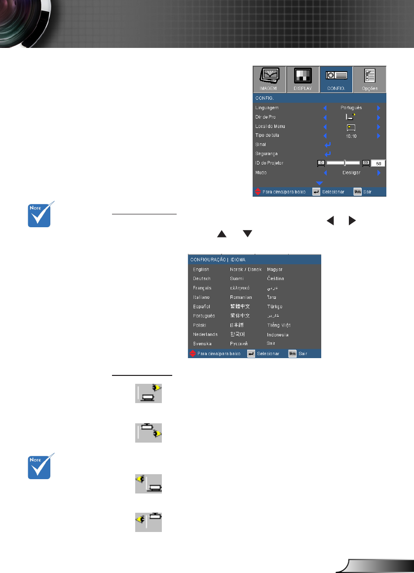 sub menu e use a tecla ou para selecionar seu Linguagem