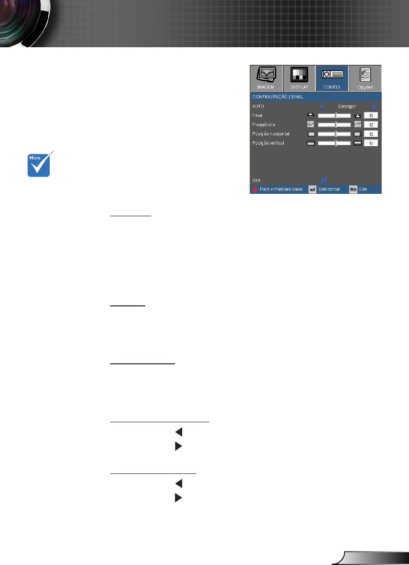 items da Fase, frequência estarão acinzentados, e se o Sinal não