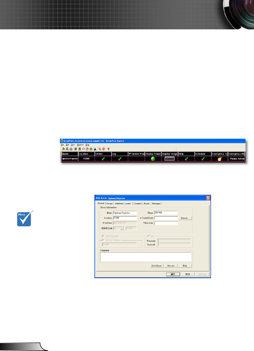 endereço IP). Crestron RoomView monitora cada projetor, incluindo