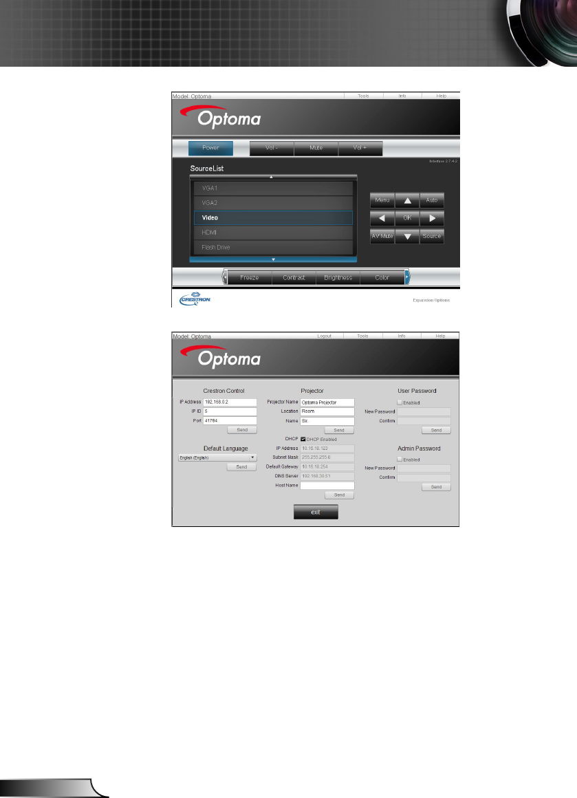 • Controle de Crestron: a informação básica de rede do dispositivo