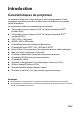 Introduction Caractéristiques du projecteur Le projecteur intègre un moteur optique à hautes performances et une conception conviviale pour offrir un haut niveau de fiabilité et une grande facilité d'utilisation.