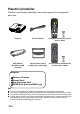 Paketin İçindekiler Projektörü kutusundan çıkardığınız zaman şu parçaların bulunduğundan emin olun: Projektör AC Güç Kablosu Uzaktan Kumanda (IR) ve piller (AAA *2 Adet) VGA Kablosu (D-SUB ile D-SUB arasında) Taşıma Çantası (belirli modeller için isteğe bağlı) Çin için Uzaktan Kumanda (IR) ve piller (AAA *2 Adet) Belgeler: 5Kullanıcı Kılavuzu 5Garanti Kartı 5Hızlı Başlangıç Kartı 5WEEE Kartı (yalnızca EMEA için) Not Avrupa garanti bilgileri için, lütfen www.optpmaeurope.