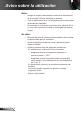 Controles del usuario Receptor Superior: Seleccione “encender” para iniciar el receptor. Seleccione “apagar” para cerrar el receptor. Reestablecer el filtro de polvo Seleccione “Sí” para mostrar o “No” para ocultar el mensaje de advertencia cuando se muestre el mensaje de modificación de filtro. Restablecer Elija “Sí” para devolver los parámetros de pantalla a las configuraciones por defecto de fábrica en todos los menús.