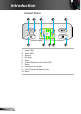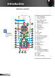 Introduction Product Overview Main Unit 12 1 3 11 2 4 5 7 6 AUDIO1-IN (VGA1/VGA2) RS-232 VIDEO S-VIDEO VGA1-IN / SCART / YPbPr VGA-OUT HDMI PB/MOUSE SERVICE 12V OUT L R DISPLAY USB / AUDIO OUT MIC AUDIO2-IN (S-VIDEO/VIDEO) VGA2-IN / YPbPr RJ-45 15 5 9 5 8 10 2 13 14 1. 2. 3. 4. 5. 6. 7. 8 Control Panel IR Receivers Cable Cover Speaker Tilt-Adjustment Feet Mirror Cover Input / Output Connections Power Socket 9. 10. 11. 12. 13. 14. 15.