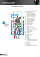 Introducción Información general del producto Unidad principal 12 1 3 11 2 4 5 7 6 AUDIO1-IN (VGA1/VGA2) RS-232 VIDEO S-VIDEO VGA1-IN / SCART / YPbPr VGA-OUT HDMI PB/MOUSE SERVICE 12V OUT L R DISPLAY USB / AUDIO OUT MIC AUDIO2-IN (S-VIDEO/VIDEO) VGA2-IN / YPbPr RJ-45 15 5 9 5 8 10 2 13 14 1. Panel de control 2. Receptores de infrarrojos (IR) 3. Cubierta de los cables 4. Altavoces 5. Pie de ajuste de inclinación 6. Cubierta del espejo 7. Conexiones de entrada y salida 8.